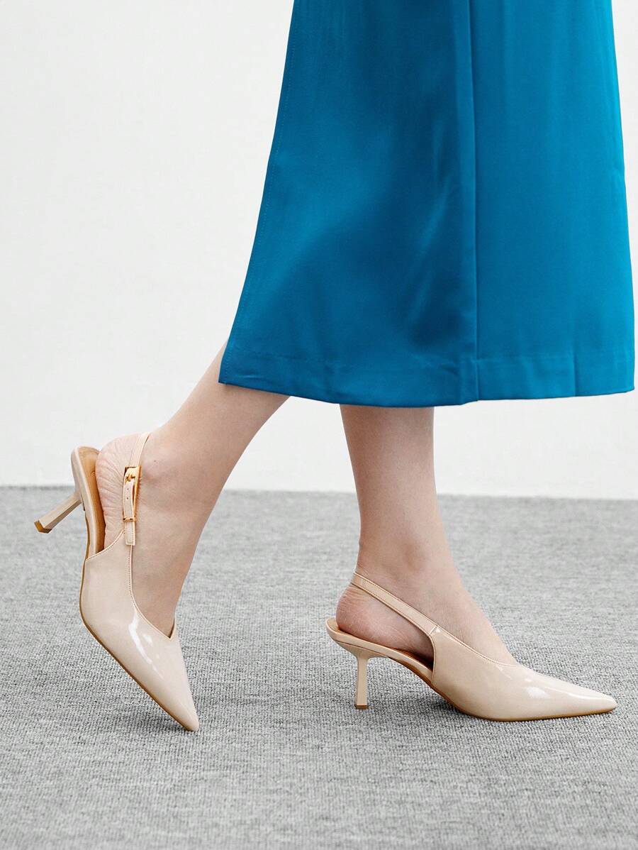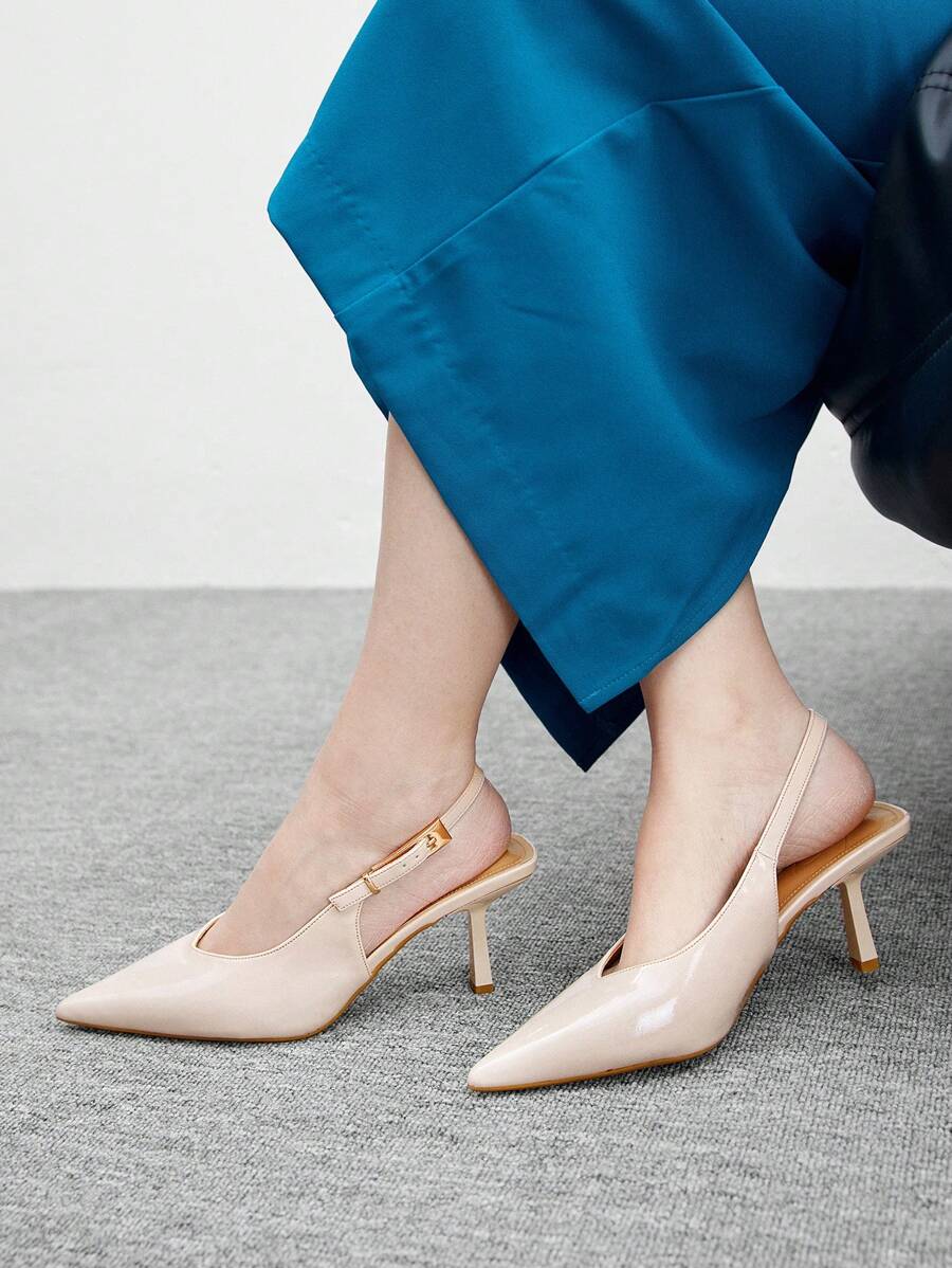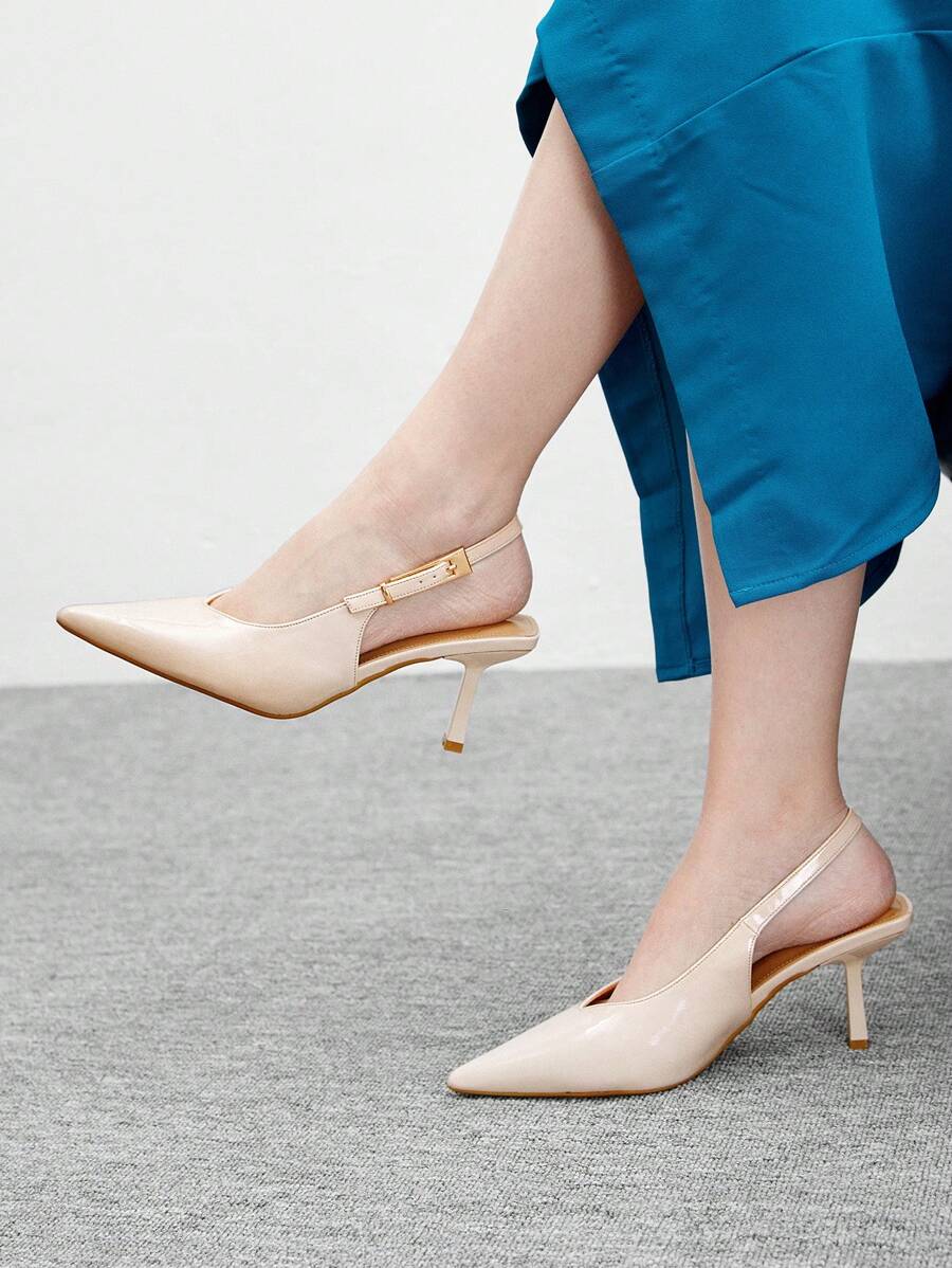 CUCCOO BIZCHIC Women Pointy Toe Stiletto Heels Slip-On Pumps, Simple Casual Commuting Elegant Synthetic Leather Peep-Toe High Heels, Suitable For Professional Workplace And Formal Occasions Spring Shoes Spring Break Easter