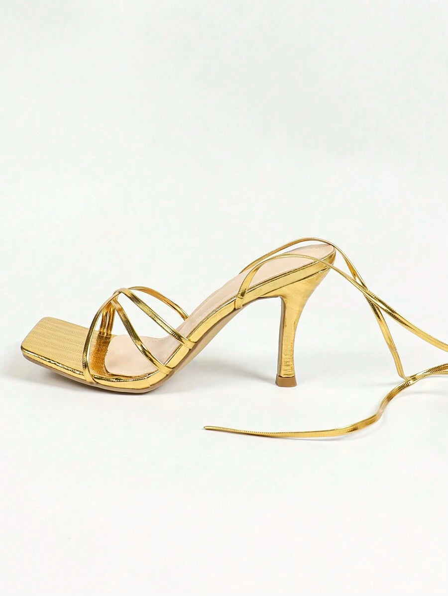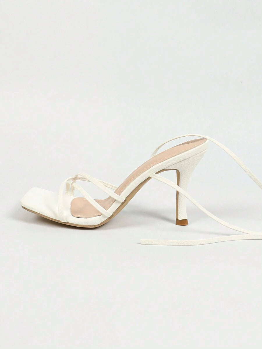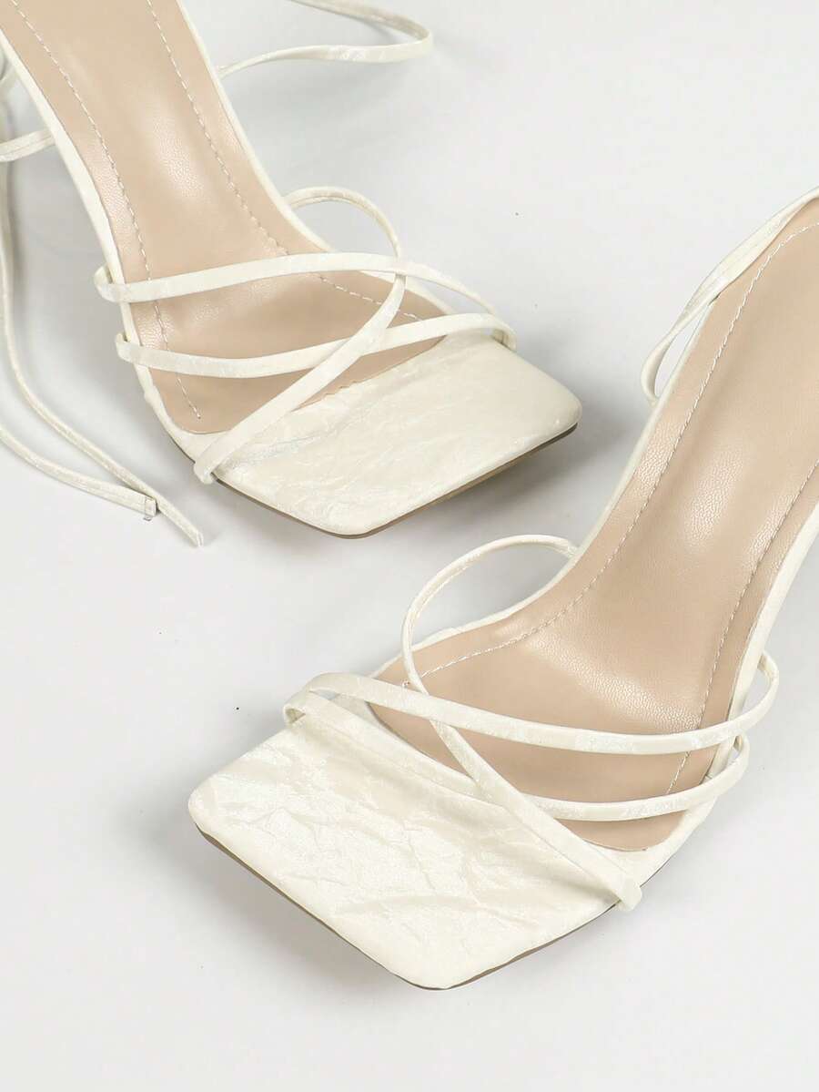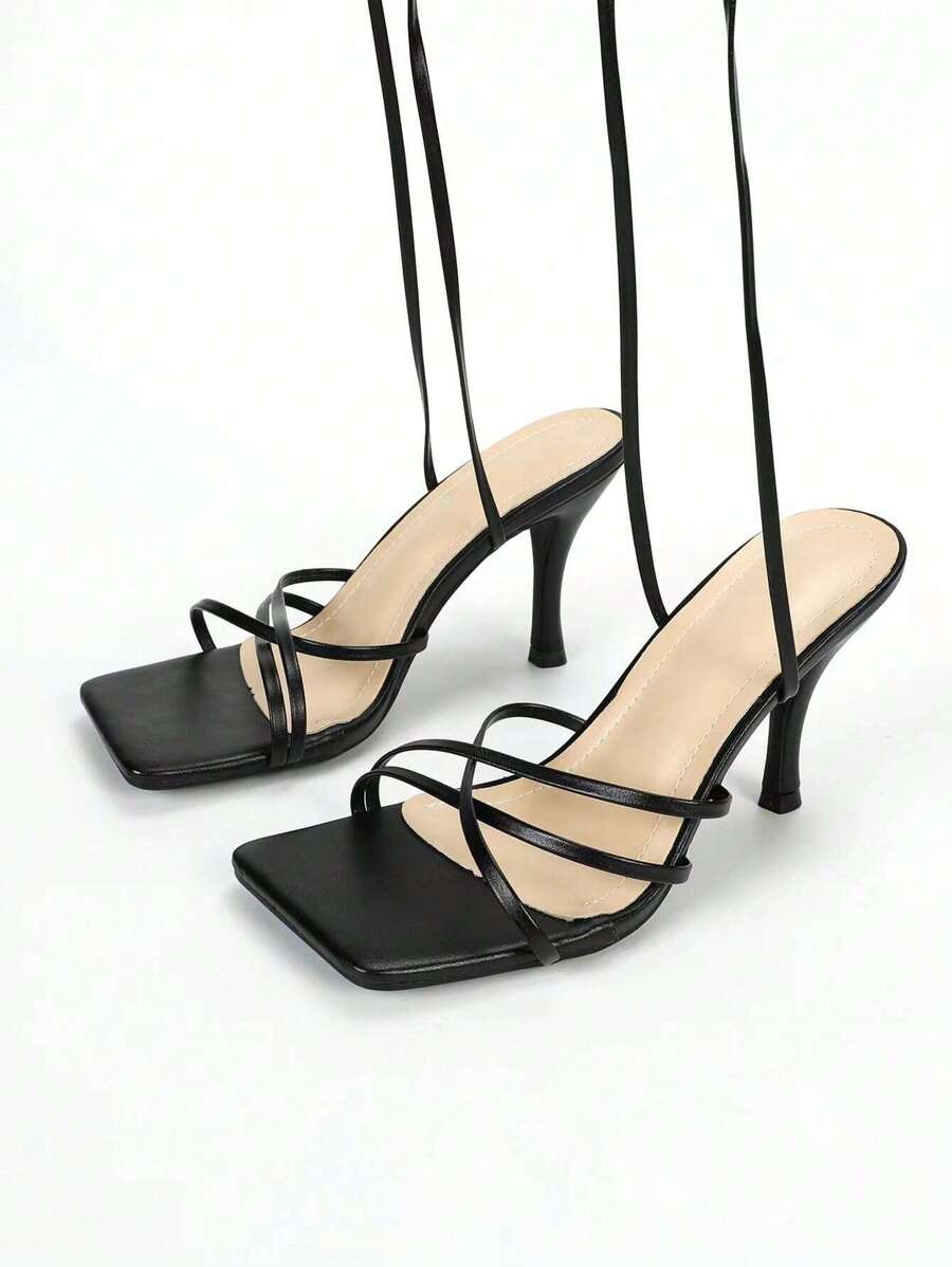 Women Lace Up High Heels Red Sexy Open Toe Stiletto Sandals