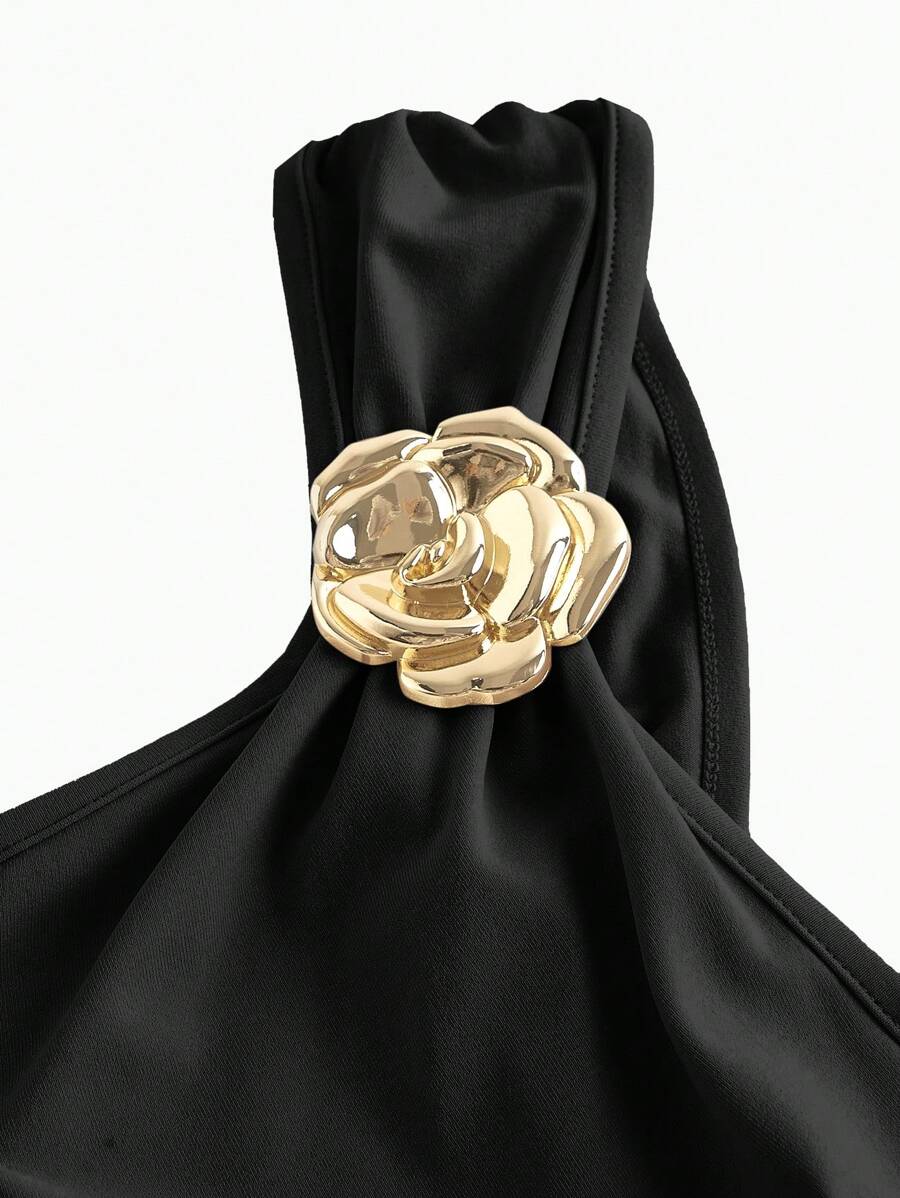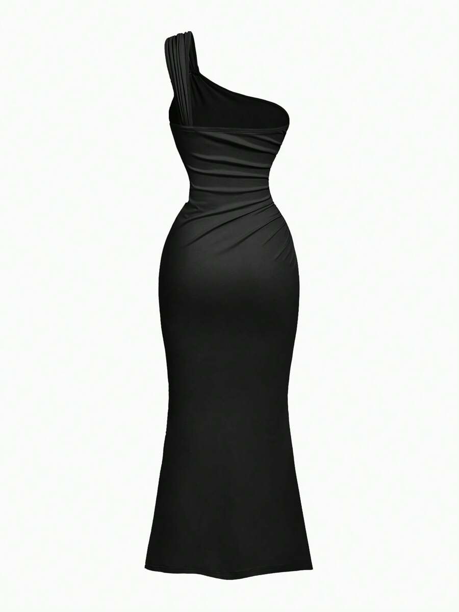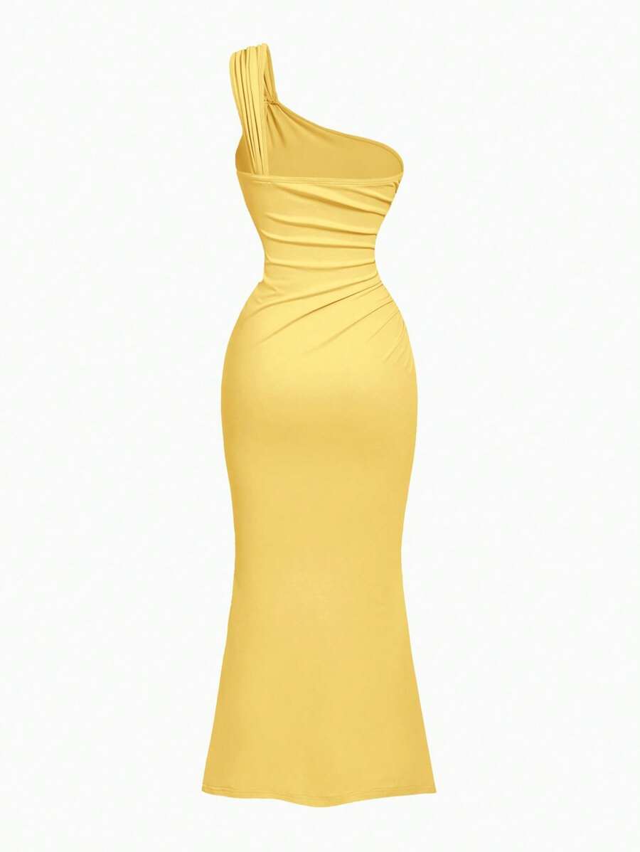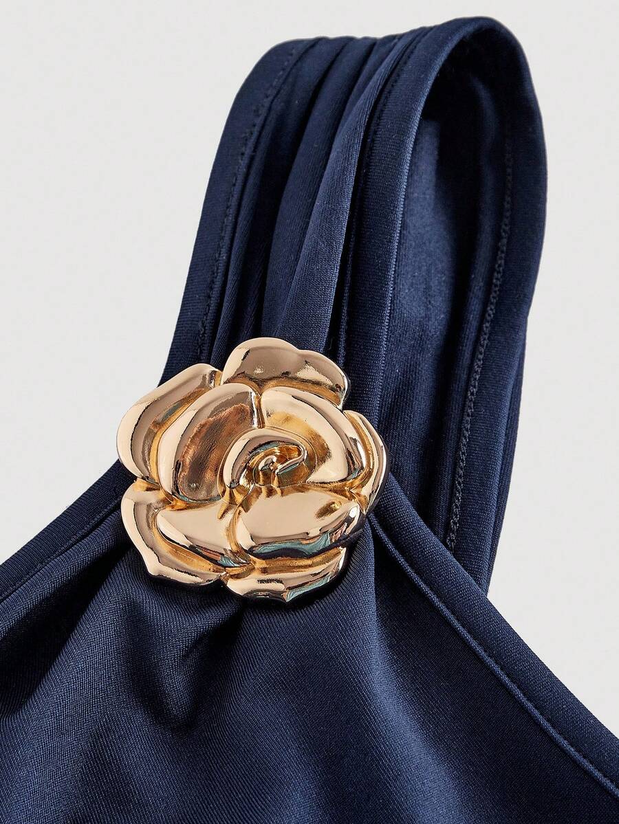 X Hannahelzahed SHEIN MOD Gold Brooch Decor Asymmetric Neck Ruched Fishtail Skirt