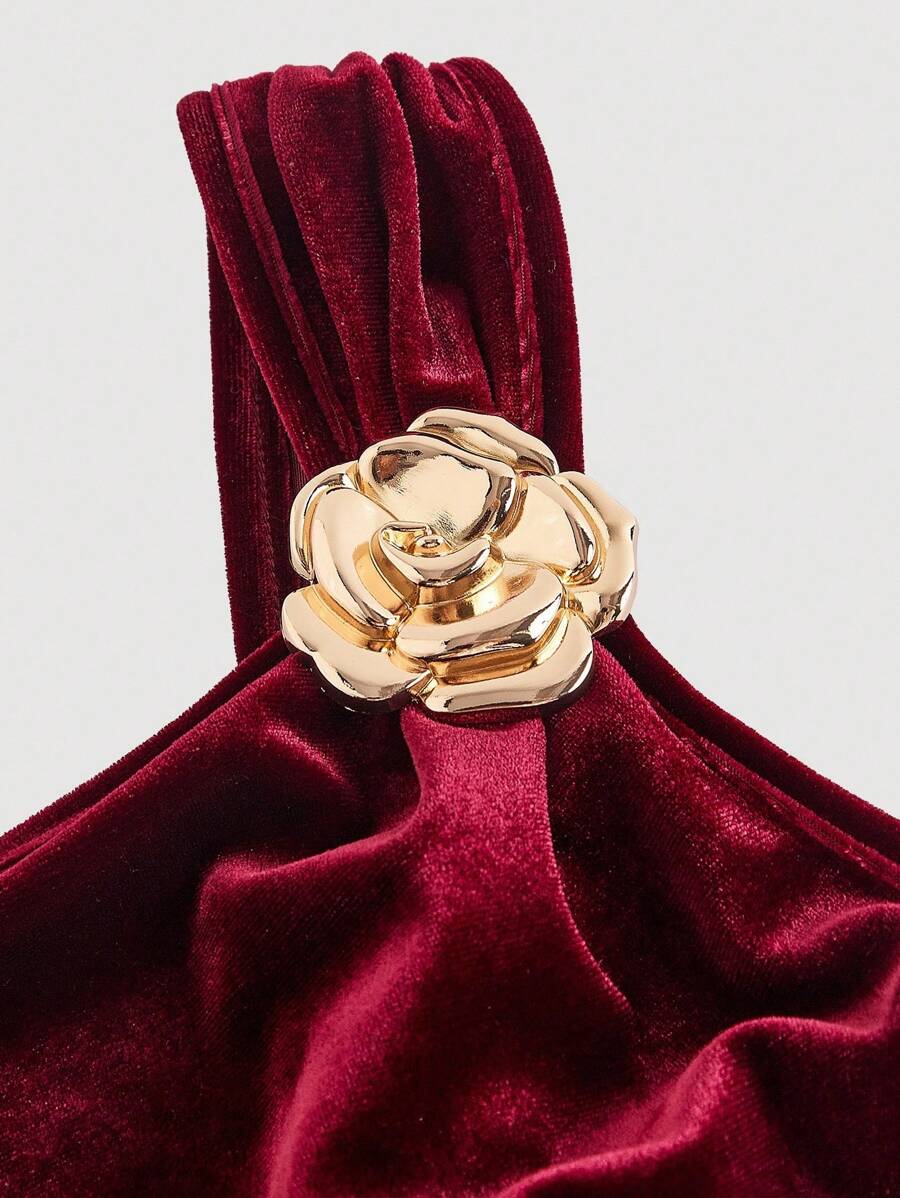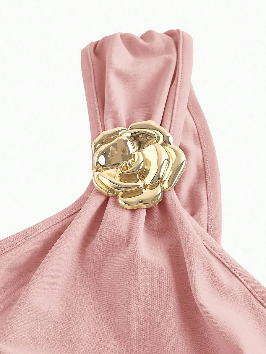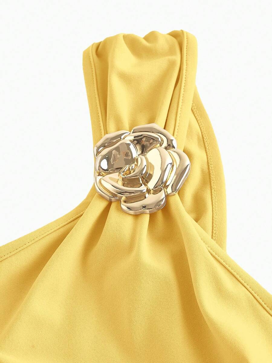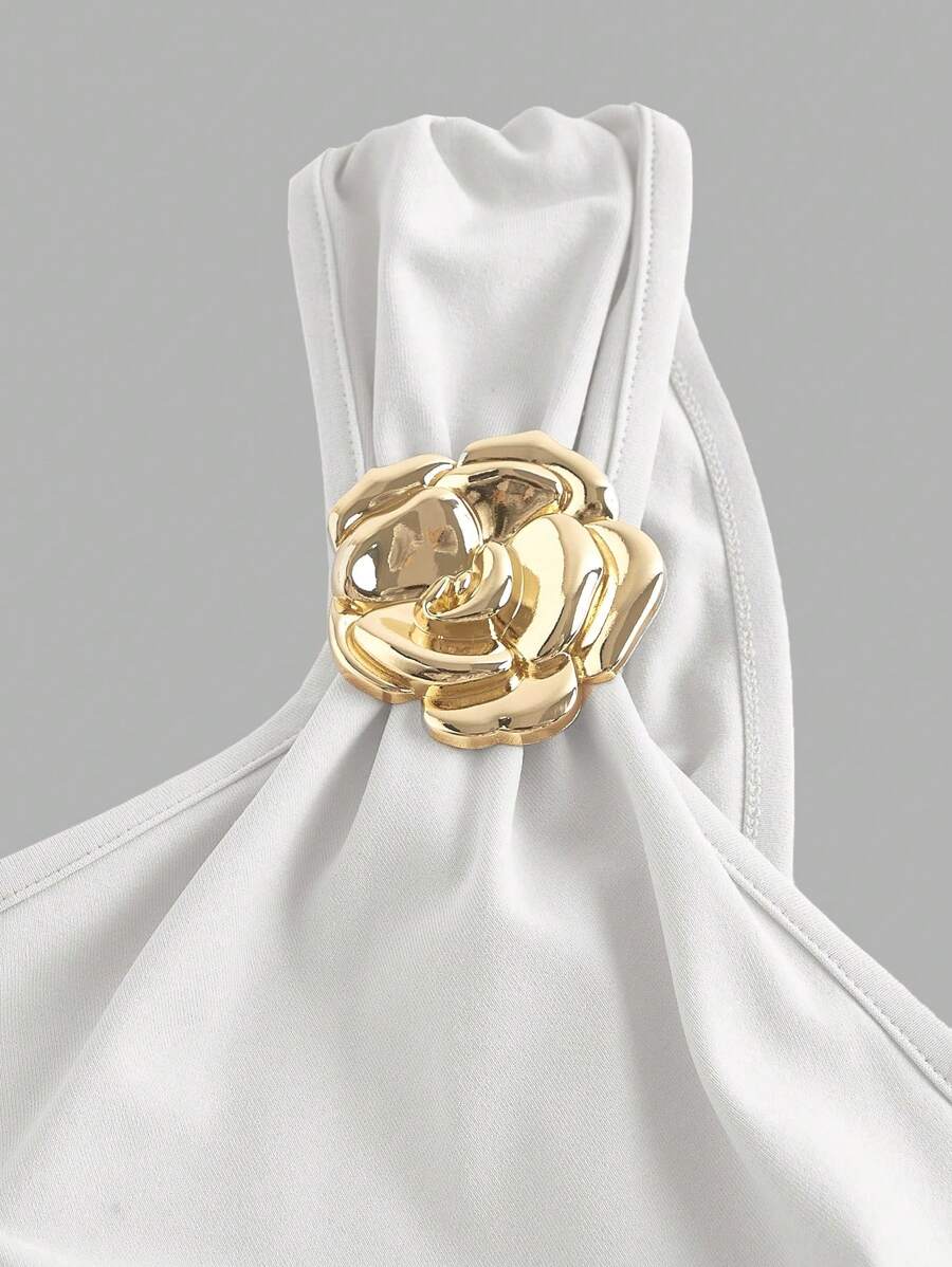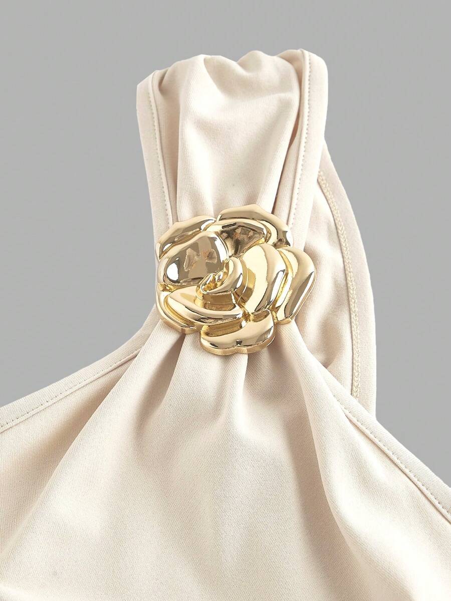 X Hannahelzahed SHEIN MOD Gold Brooch Decor Asymmetric Neck Ruched Fishtail Skirt