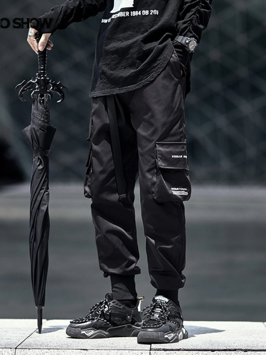 Men's Plus Size Casual Cargo Joggers with Elastic Cuffs